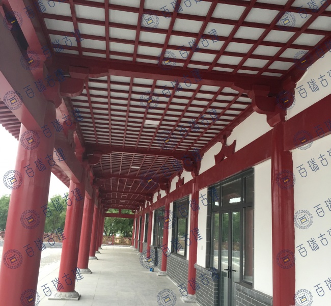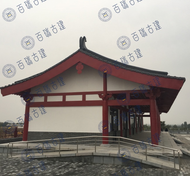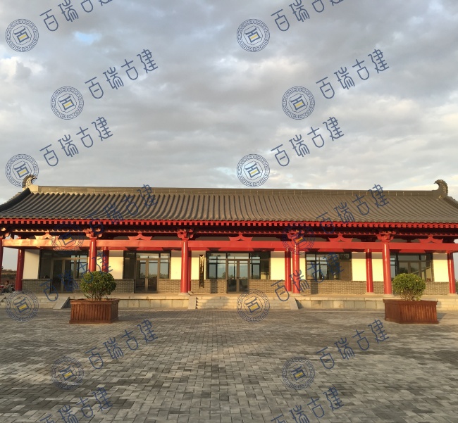 游客中心以唐风建筑为主,色调简洁明快,屋顶舒展平远,门窗朴实无华,呈现雄深雅健之感。