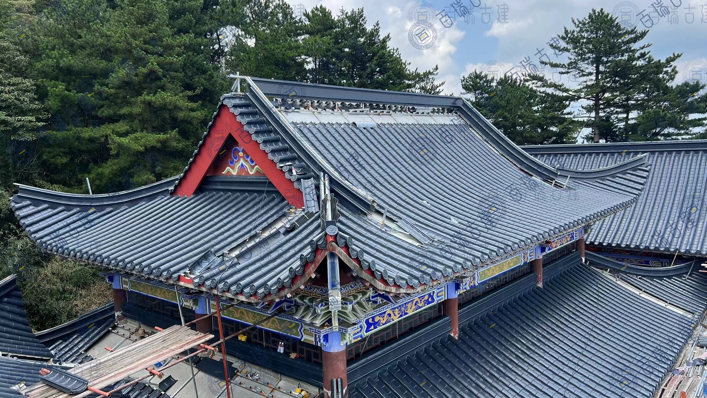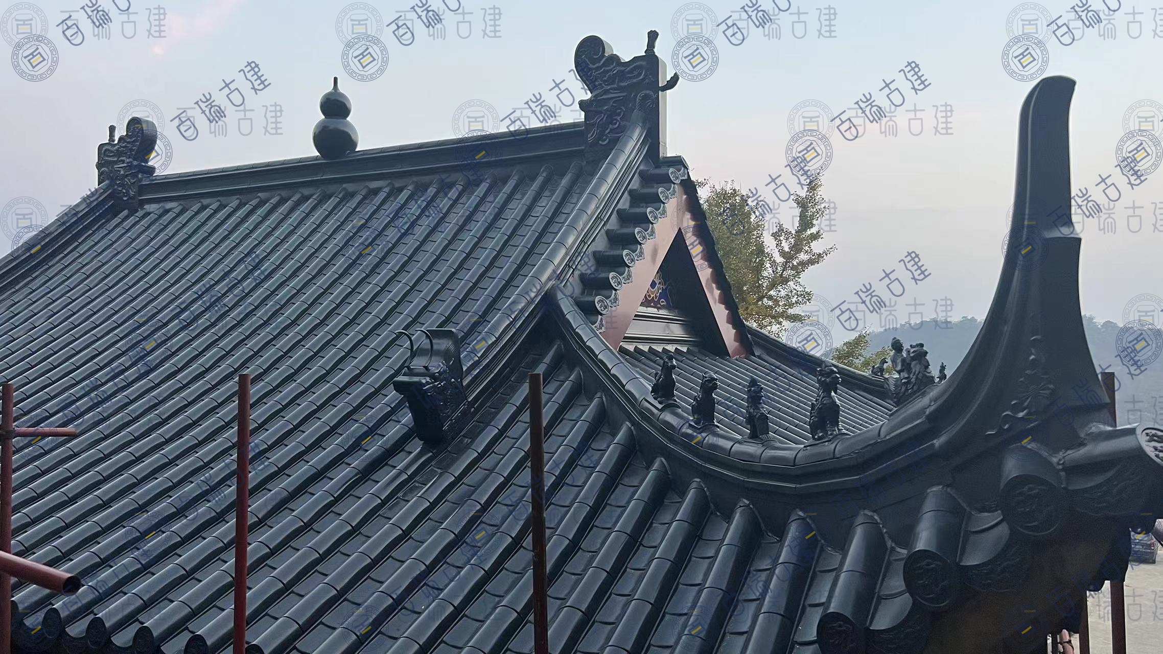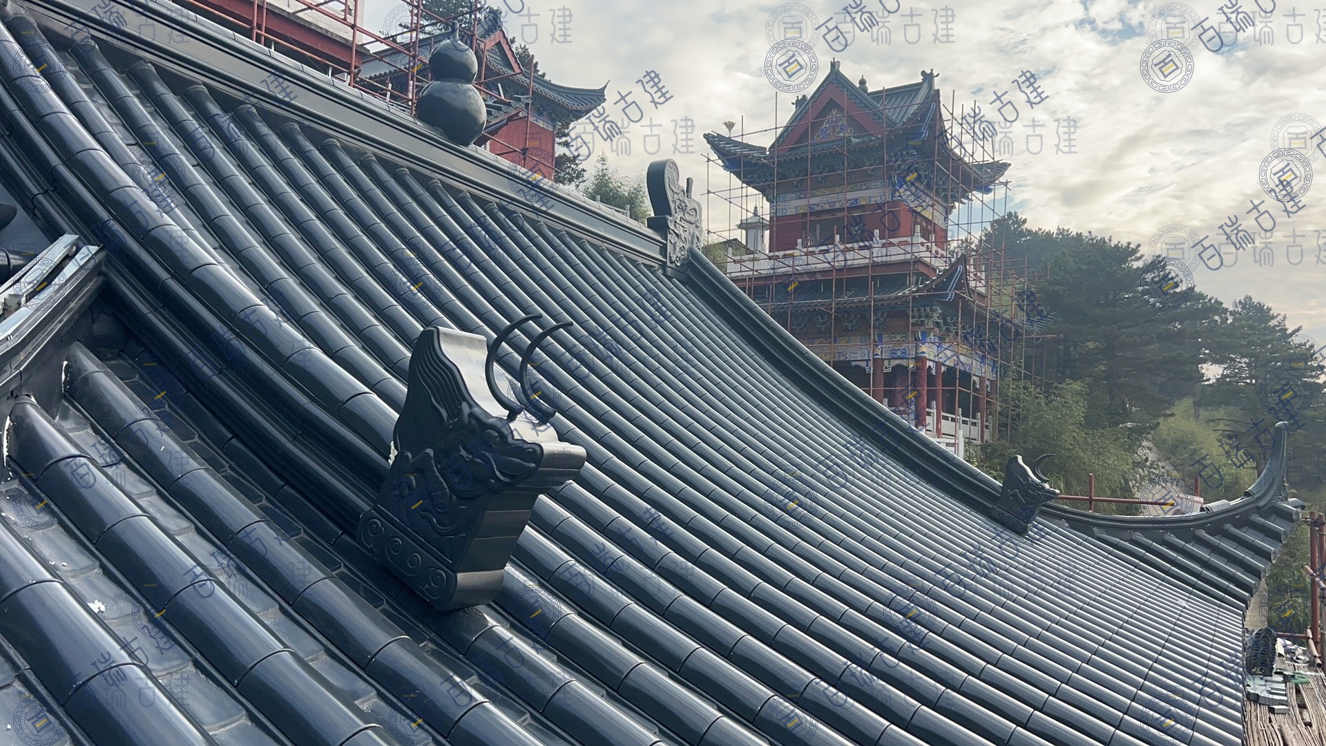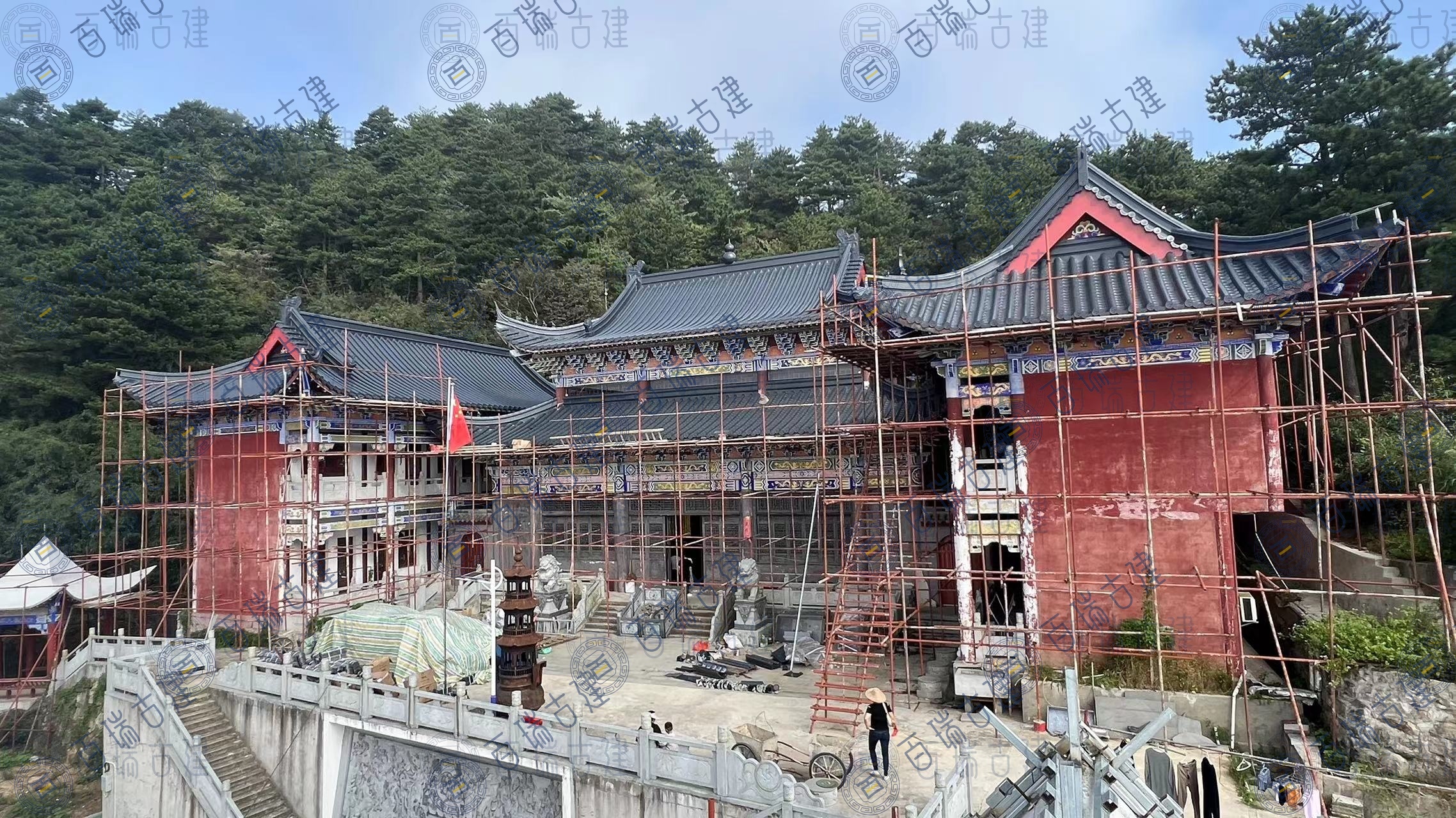 仙人台白云观位于湖北省黄冈市蕲春县,是鄂东一个重要的道教圣地和旅游风景区。“远上寒山石径斜,白云生处有人家”。仙人台巅,峰高鹤深,茂林修竹。极目千里,深灰色金属屋面拼接紧密,较大的坡度使得屋面在视觉上更具层次感和立体感,与周围的山体环境相呼应,形成一种和谐的美感。