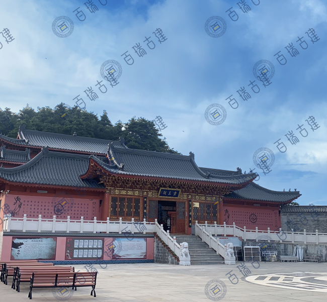 天竺山道观历史悠久,是陕西道教发祥地之一,陕南第一神山。天竺山是自然生态与道教文化凝合体。以“朴”为标准,与天地之势相结合,红墙灰瓦的重檐歇山顶,搭配屋脊上的屋脊兽,在深山中,别有一番风味。
