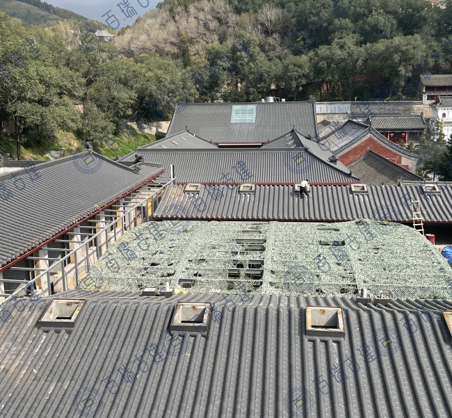大显通寺位于五台山台怀镇北侧,是五台山建立的第一座佛教寺院,是五台山佛教文化的发源地和发展中心。显通寺新增的屋面系统以质朴的深灰色为主色,屋脊兽飞旋于屋脊之上,没有太多浮华的装饰,极为沉稳庄重。