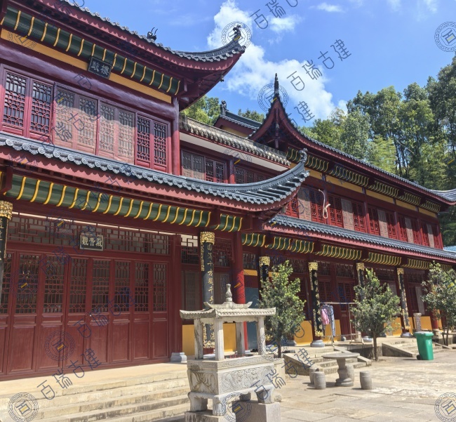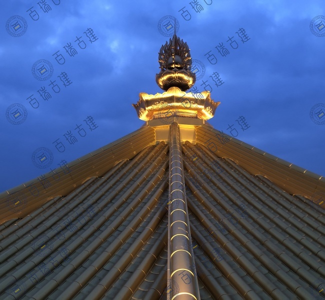 圆明禅寺位于苏州吴江盛泽镇,典型的中式风格建筑,屋面铺设金色金属瓦,多层飞檐设计,屋檐向上翘起,形如飞鸟展翅,给人以轻盈灵动之感。