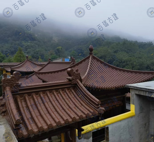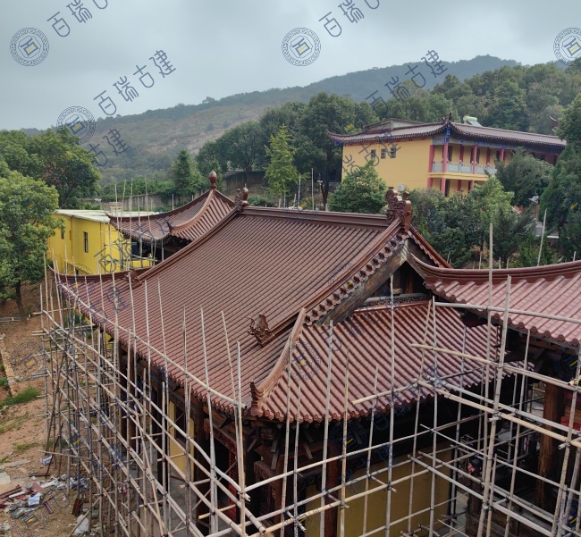 极乐寺位于九江彭泽县,此次项目以朱红色金属屋面瓦为主,那鲜艳而不失沉稳的朱红,在寺庙的屋面之上,宛如东方古老文化的血脉在建筑中流淌。阳光倾洒,朱红色与蓝天白云相映成趣,勾勒出一幅绝美的画面。