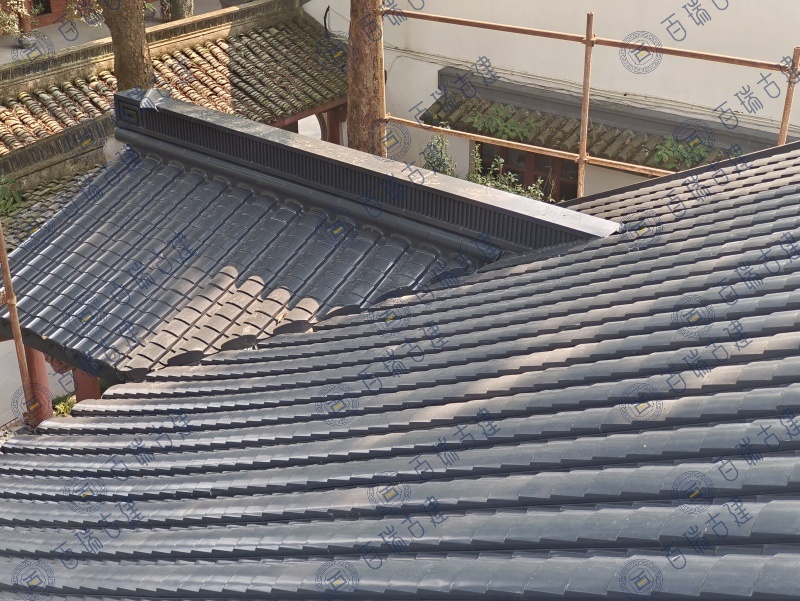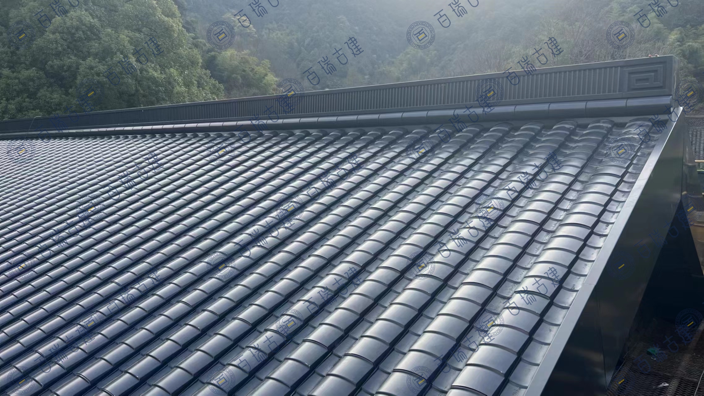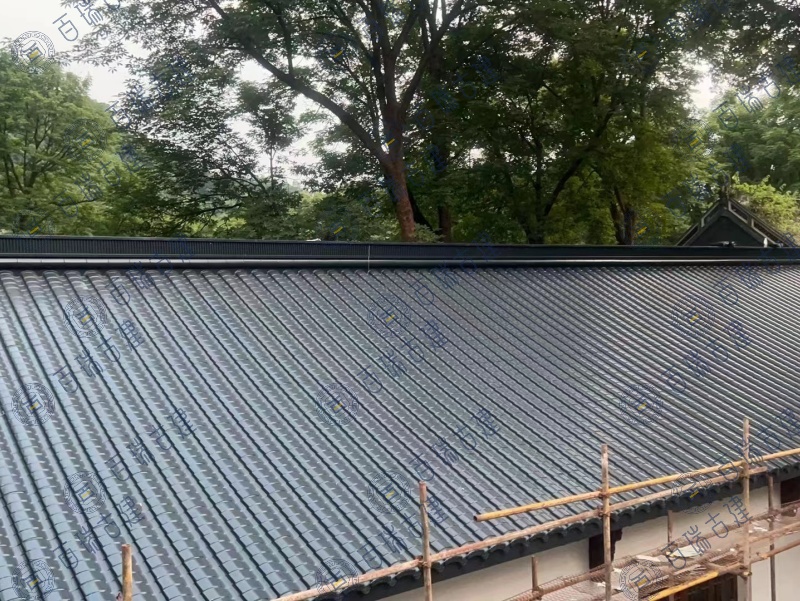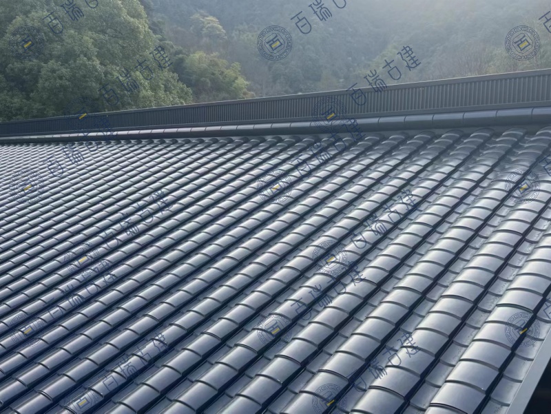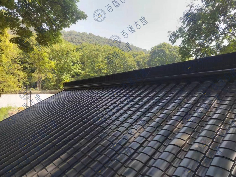 佛协位于浙江,小青瓦是一种弧形瓦。又称阴阳瓦,顺乎阴阳,合乎五行。青瓦给人以素雅,沉稳,古朴,宁静的美感,片片青瓦,简净无奢,极具侘寂空灵之禅意。