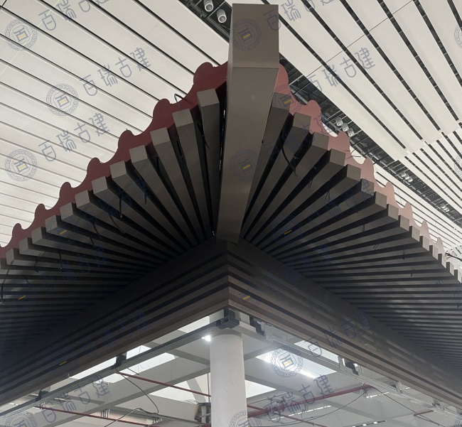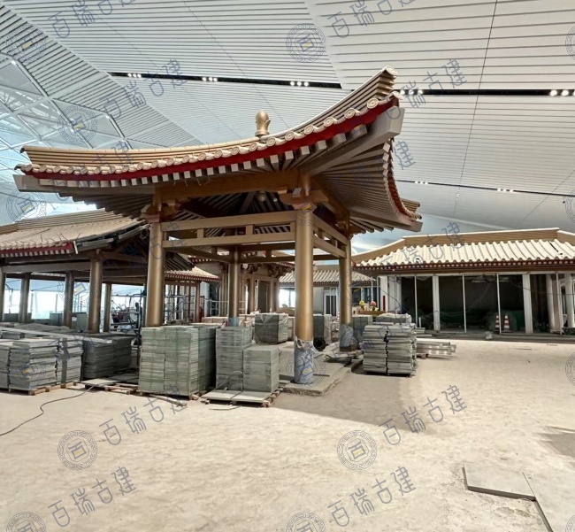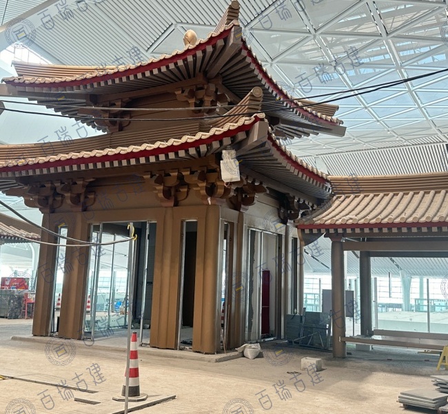 西安咸阳国际机场T5航站楼整体设计重现了盛唐建筑,以现代巩义复刻汉唐盛世,屋面设计灵感源自古建筑重檐屋顶构造,呈现出“三重檐”屋顶风格构造,展现出雄浑与典雅的气质。