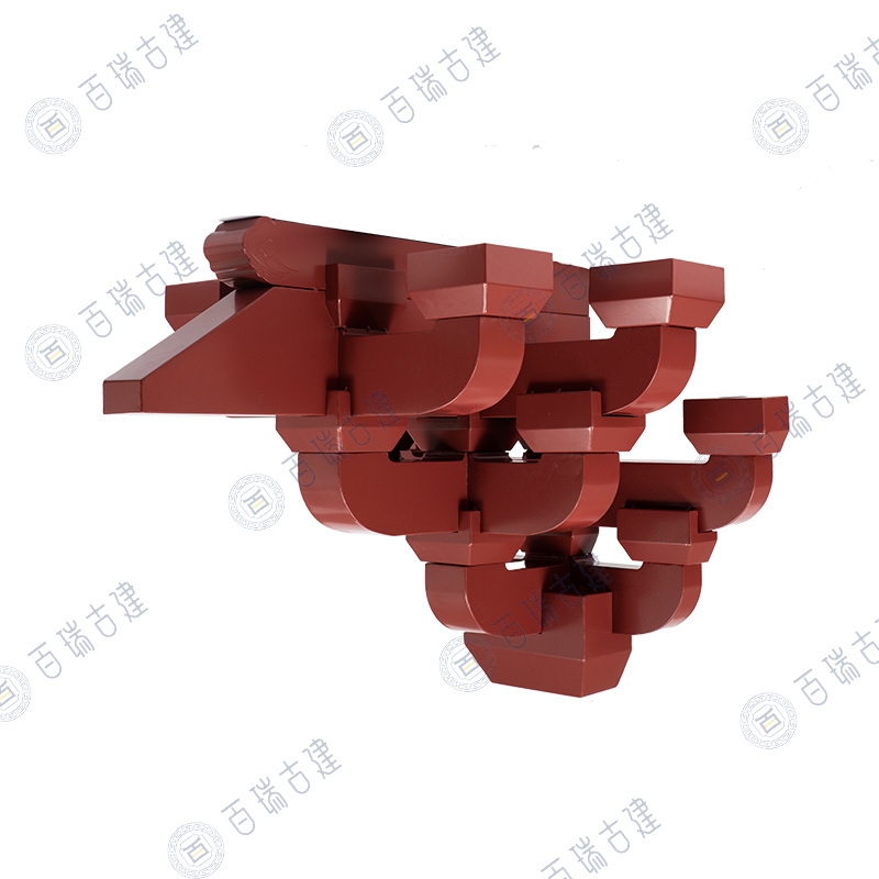 “斗拱”是由若干个栱件层层垒叠,相互搭交而成的组合构件,是一种既具有悬挑作用,又具有装饰效果的支撑性构件。